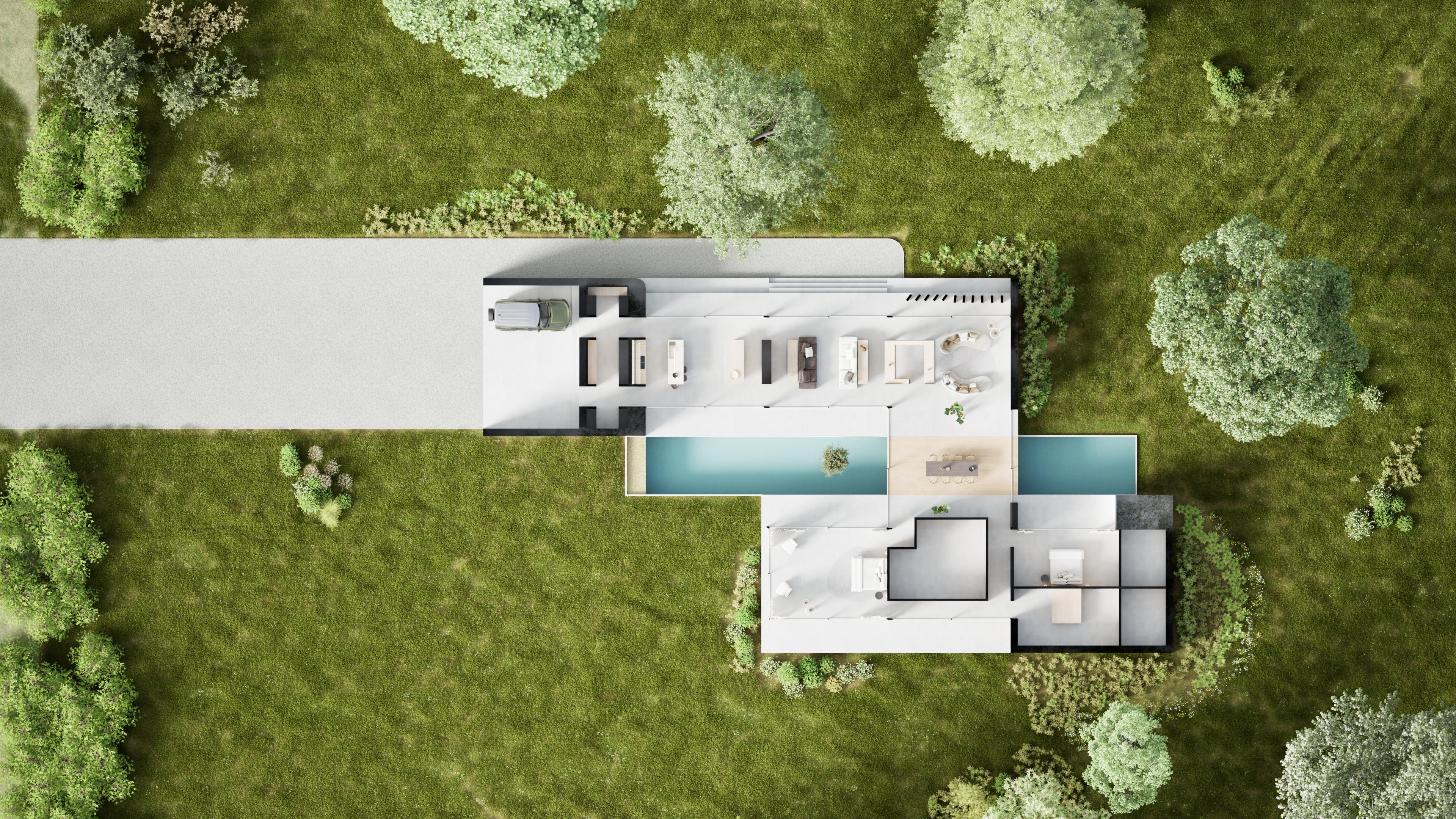 The landscape itself is literally lifted and transformed into a rooftop garden with a terrace. Earthbound emphasizes durable, high-quality elements that stand the test of time, creating a functional, calm living environment.